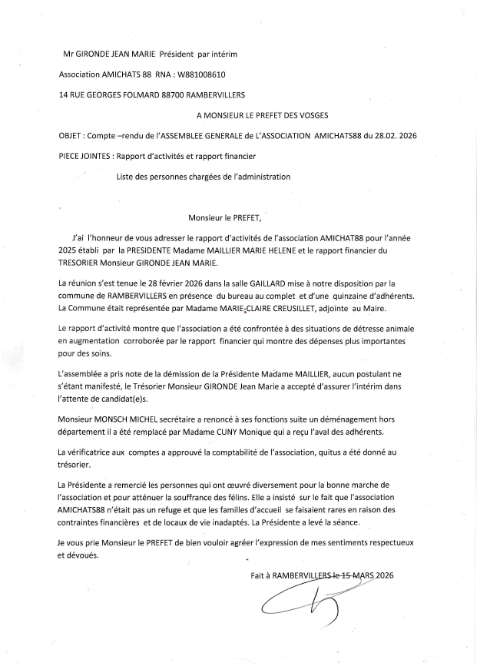 Assemblée générale Ami CHATS 88 - Année 2025.